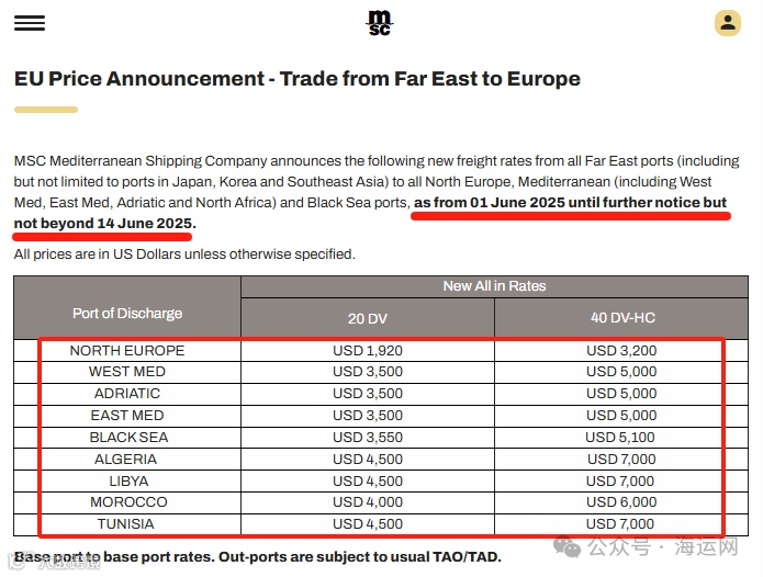 近日,多家知名船公司,包括MSC(地中海航运)、赫伯罗特、达飞、马士基等,陆续对外公布了6月的运价调整计划。此次运价调整涉及范围广泛,涵盖欧洲和地中海、南美、非洲、中东等多个重要航线。