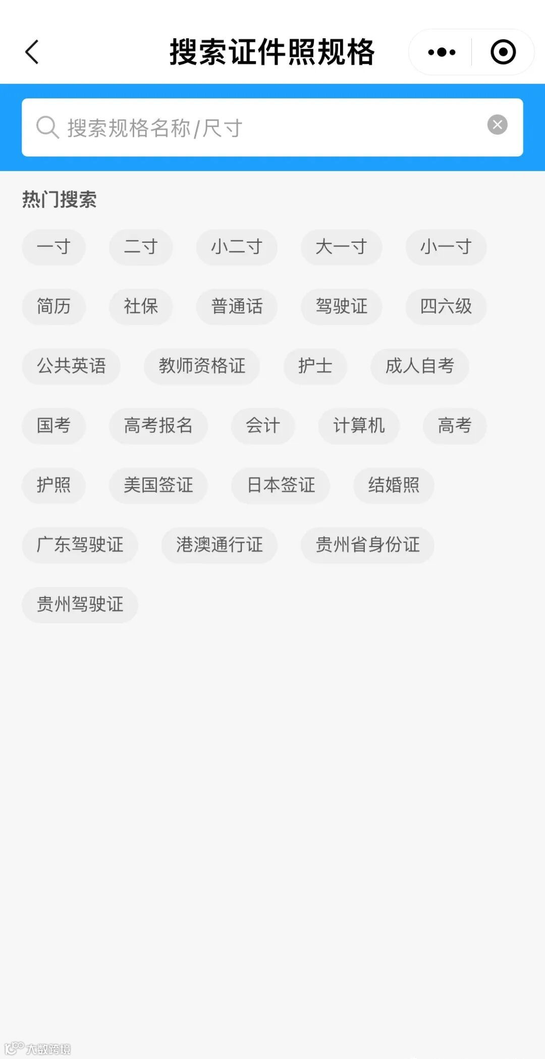 常用寸照里找不到,可以点击常用尺寸右边的更多分类,输入证件照名称。