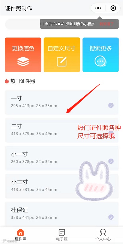 制作各类证件照、更换证件照底色、自定义证件照尺寸等。