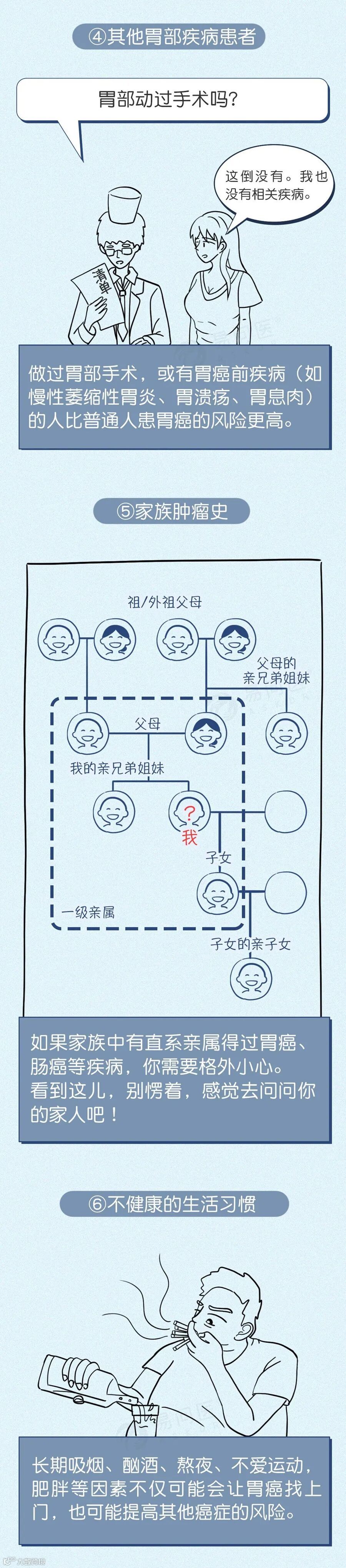 5、家族肿瘤史:胃癌患者一级亲属,即直系亲属,需格外小心。