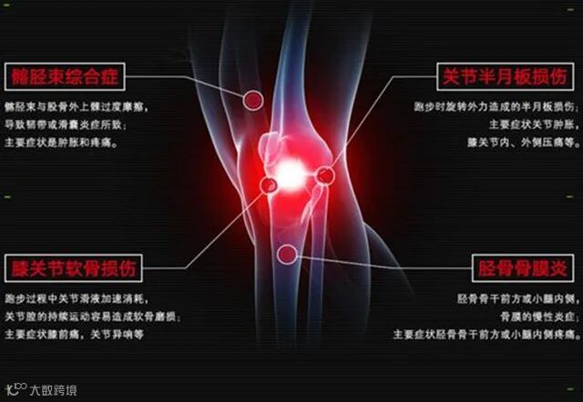 跑步姿势不当、长时间保持膝关节弯曲坐姿、上下楼梯或者走坡路时带来的疼痛、身体及大腿猛然内旋,半月板撕裂带来的痛,都可能是膝关节受伤的表现。