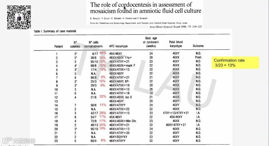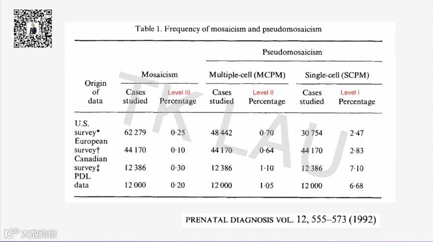 1.关于羊水培养后嵌合体的真嵌合(true mosaicism)和假嵌合(pseudomosaicism)的问题。