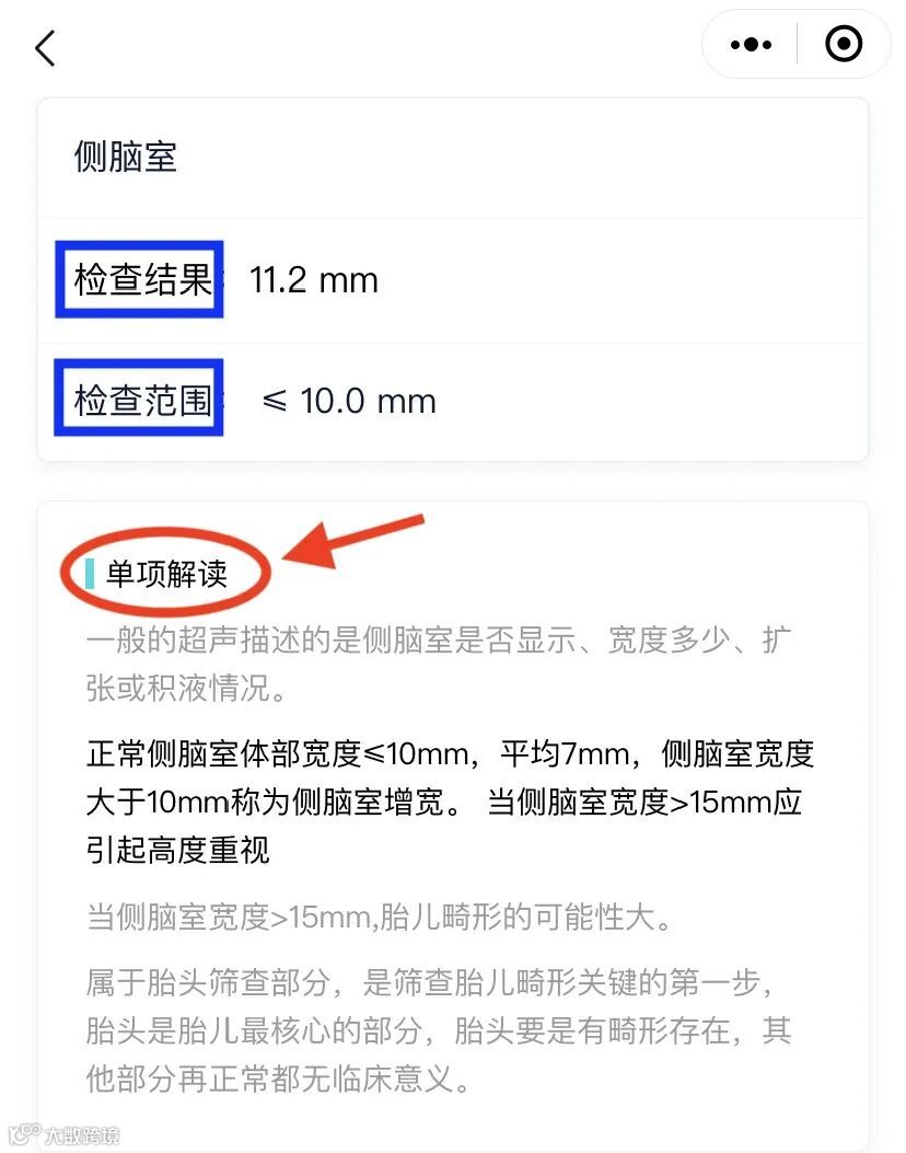 中间是产检报告解读得出的“注意指标”以及“全部指标”;