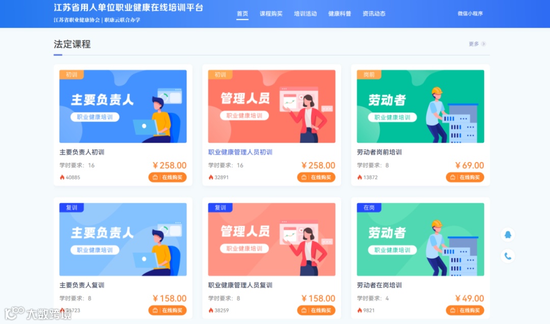 为响应《国家卫生健康委办公厅关于进一步加强用人单位职业健康培训工作的通知》,以加强用人单位职业病防治工作为切入点,江苏省职业健康协会联合职康云推出用人单位职业健康在线培训平台。