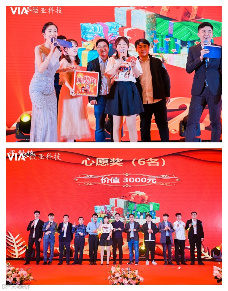 最让人期待、激动人心的莫过于幸运抽奖环节啦,公司准备了丰盛的抽奖礼品,给微亚家人们带来幸运星,送去新祝福。晚宴现场惊喜不断,幸运连连,祝愿大家新的一年收获满满。