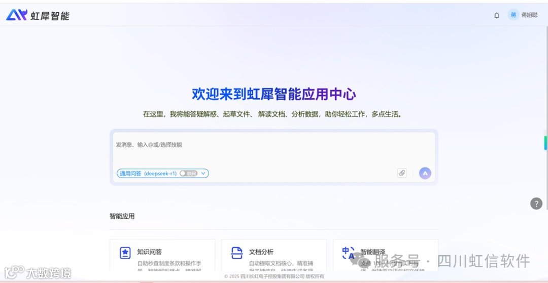 据悉,长虹虹犀智能平台通过打通知识梳理、治理与存储,构建结构化、高可用的企业知识库,再接入AI大模型,最后形成智能问答、辅助决策、经验推荐、自动总结等核心能力,现已构建知识问答、通问问答、文档对比、文档分析、智能翻译、快速阅读、文案生产等实用功能。