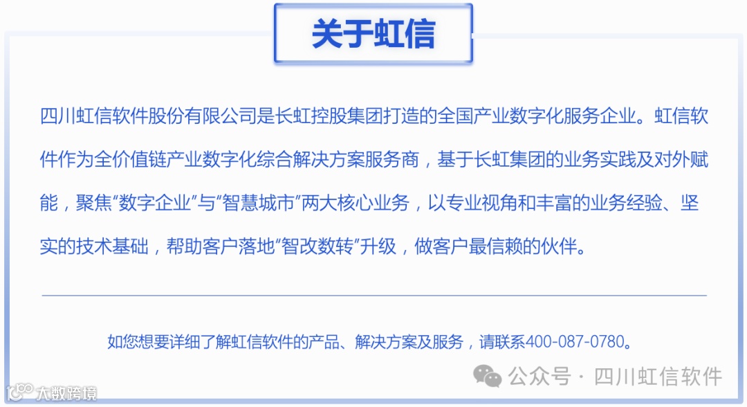 此次战略合作的签署,将助推虹信软件与用友网络在企业数智化、行业国产化替代等方面的交流与合作开启新篇章。双方将以此为契机,积极而务实地谋划合作商机,尽快实现实质性业务合作,为推动各行业企业数智化升级和产业结构优化贡献“1+1>2”的智慧与力量。