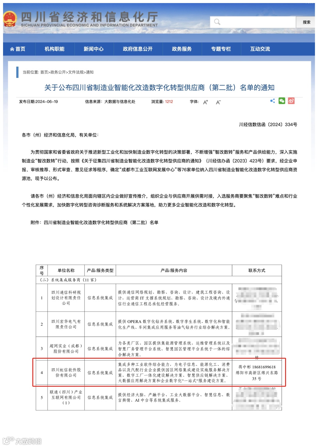 经过企业申报、审核推荐、形式审查、意见征求等程序,虹信软件在“智改数转”领域的综合实力获得认可,成功入选四川省制造业智能化改造数字化转型供应商。