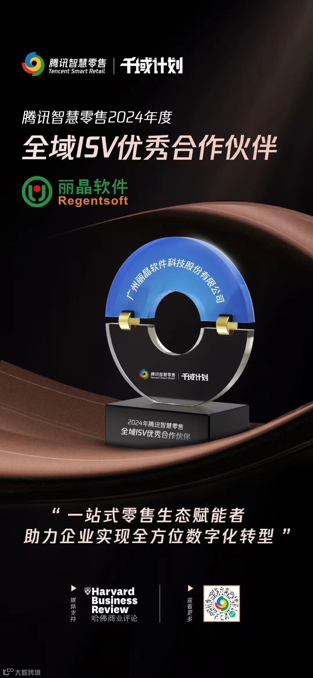 在千域计划年度颁奖盛典上, 丽晶软件凭借领先的产品技术能力及专业的解决方案赋能零售品牌实现全域增长,并助力中国企业出海拓增量,获颁腾讯智慧零售2024年度“全域ISV优秀合作伙伴”、“出海创新优秀合作伙伴”两项殊荣。
