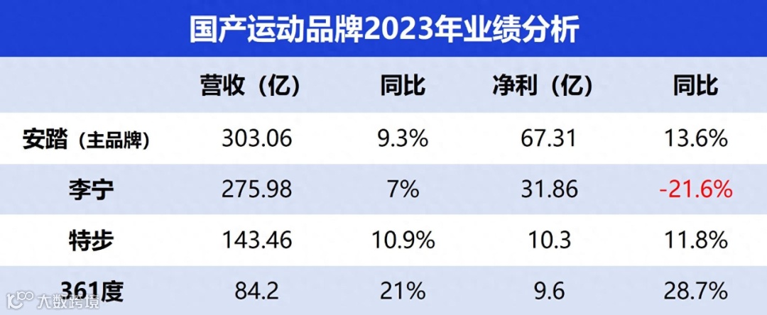 作为国产运动品牌的代表,安踏、李宁、特步、361度在2023年都交出了一份还算令人满意的的答卷。