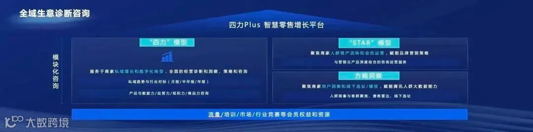 为迎接全域时代的到来,在这次数字生态大会上,腾讯智慧零售最新提出,将从“全域生意诊断咨询、全域数字化产品构建、全域营销运营落地陪跑”的经营闭环出发,做“懂生意、有技术、能落地”的全域增长伙伴,帮助商家实现长久的可持续增长。