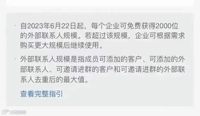 外部联系人即是你的私域用户,只要你企业微信里的用户超过了2000个,从第2001个用户开始,每增加一个,企业微信就要收一毛钱。