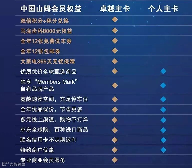 2018年底,山姆在年费260元的个人会籍基础上,推出了年费为680元的 “卓越会籍”,把高净值的忠实客户圈出来, 给予高价值继续维护。这是山姆入华以来首次对会籍进行分级。