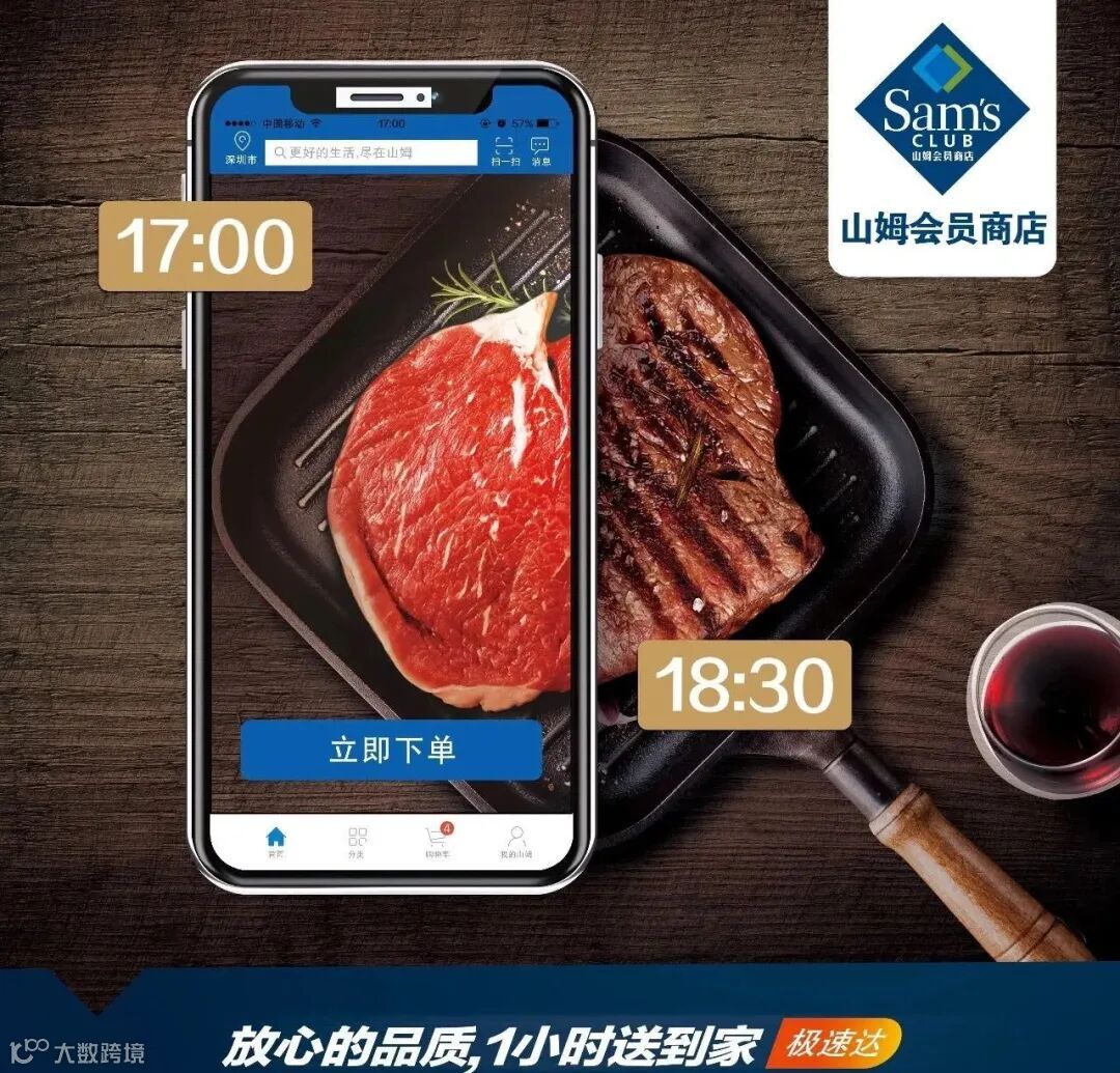 山姆也观察到这一点,早在2018年开始就在自家APP上大力推“极速达”服务,实现了APP下单+门店/前置仓拣货+第三方物流配送,基本上能做到1小时内收货。