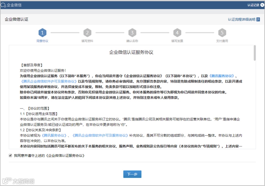 点击【企业微信认证】后,会进入企业微信认证流程。