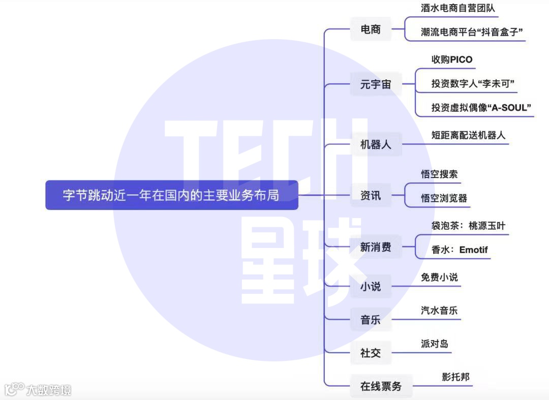 根据公开信息整理,图中仅展示部分字节布局的主要业务。