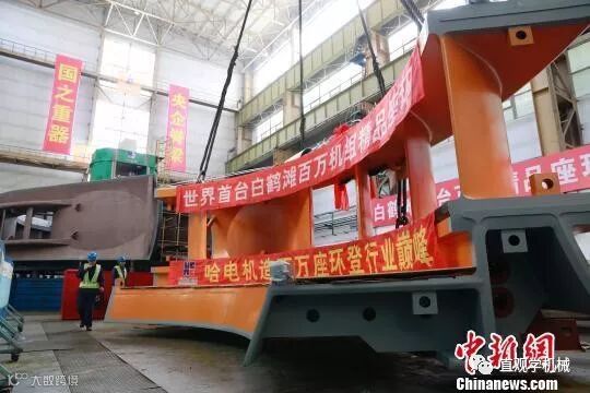 世界单机容量最大的白鹤滩100万千瓦水电机组首台座环于2017年10月17日在哈电集团电机公司水电分厂通过验收。白鹤滩水电站是中国长江三峡集团公司开发的金沙江下游河段梯级的第二级电站,建成后将仅次于三峡水电站,成为世界第二大水电站。电站装机16台单机容量为世界最大的100万千瓦水轮发电机组。