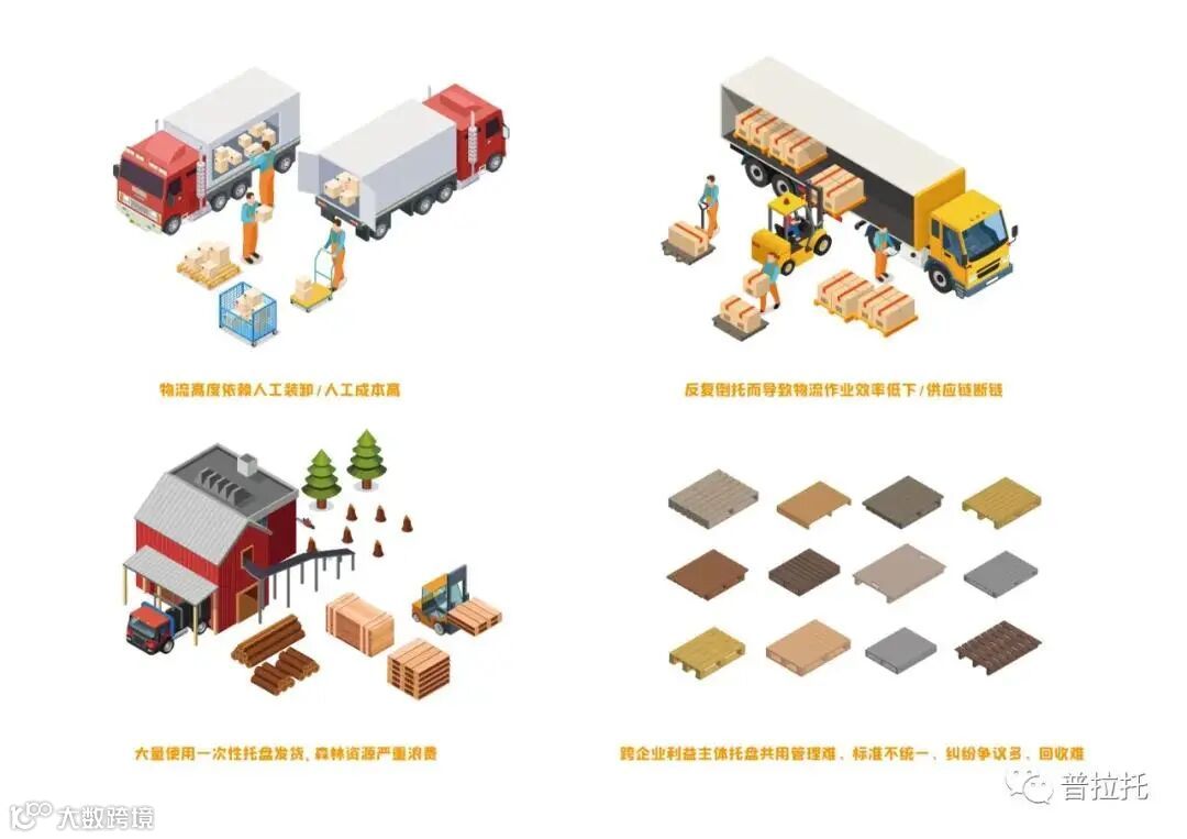 普拉托从企业经营因淡旺季波动导致托盘闲置率高,从物流高度依赖人工装卸、反复倒托而导致物流作业效率低下,供应链断链,从人力成本高而不得不采用一次性托盘,导致森林资源浪费严重,从跨企业利益主体托盘共用管理难、标准不统一、纠纷争议多、回收难等普遍市场问题出发,搭建了一套全产业链生态运营服务系统,为原料生产、核心制造、快消及商贸物流等企业提供一贯化带托运输,上下游托盘循环共享解决方案,采用“随用随还”、“通租通还”服务模式,实现了托盘“无障碍流转”的价值理念。