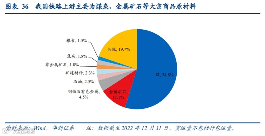 目前铁路货运主要为大宗商品原材料,下游包括港口、电厂、钢厂等等。