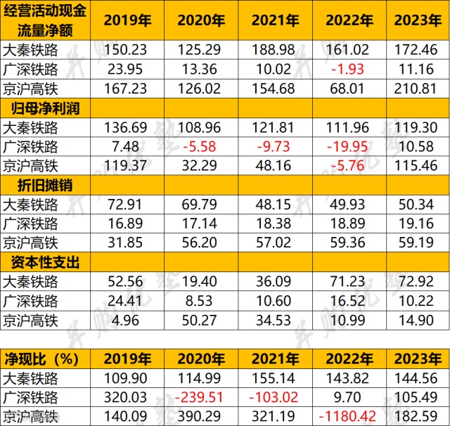 受卫生事件影响,广深铁路2020-2022年、京沪高铁2022年出现亏损。