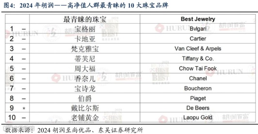 图:2024年胡润高净值人群青睐的10大珠宝品牌