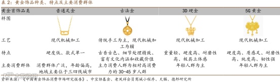 普货金——产品延展性强,但硬度低、易磨损变形,款式较单一。