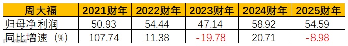 注:对于周大福,2024年相当于其2025财年,依次类推,后同。