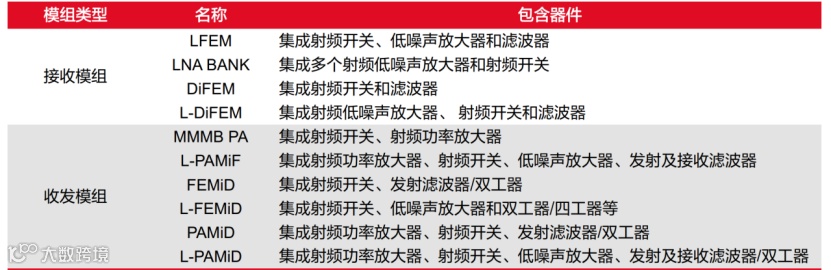 图:射频前端模组类型