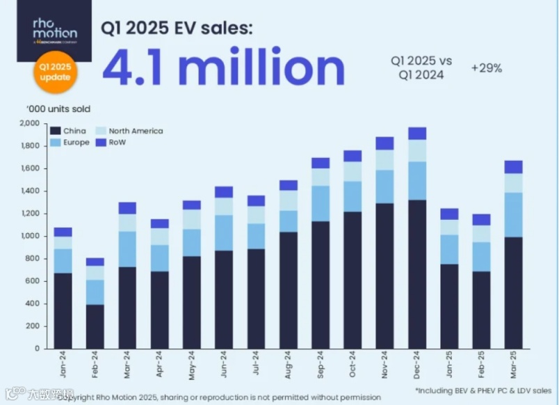 图:2025Q1全球EV销量