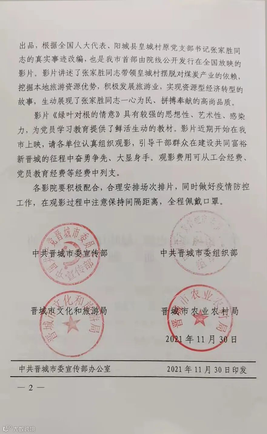 主旋律电影《绿叶对根的情意》走进山西晋城
