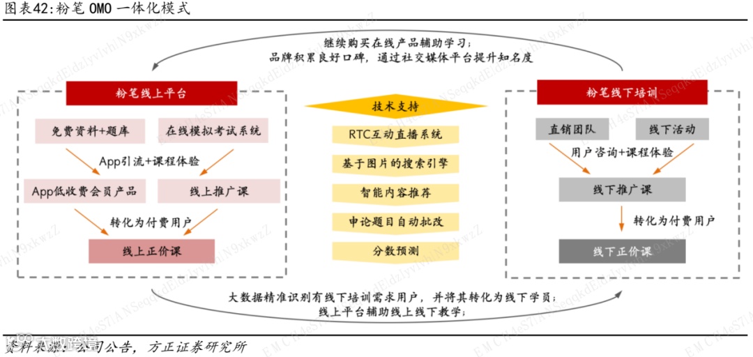 粉笔——脱胎于在线教育龙头猿辅导,于2013年开展线上培训业务,目前为公考在线招录考培龙头,核心业务包括在线培训、线下培训服务和销售内部开发的教材及辅导资料。