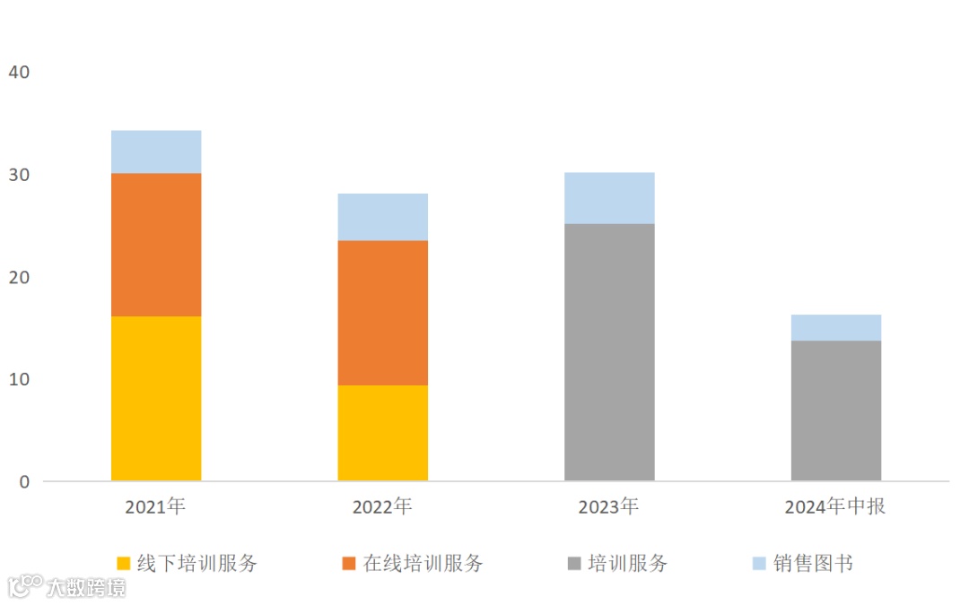 2023年,培训业务营收达25.1亿元,同比增长 6.8%;图书销售业务实现营收5.1亿元,同比增长约11.0%。