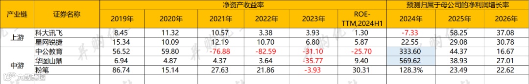 从成长性看,由于前期基数较低,中游中公教育、华图山鼎增速较高。