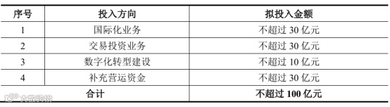-用途:中介机构费用、国际化业务、交易投资业务、数字化转型建设、补充营运资金等