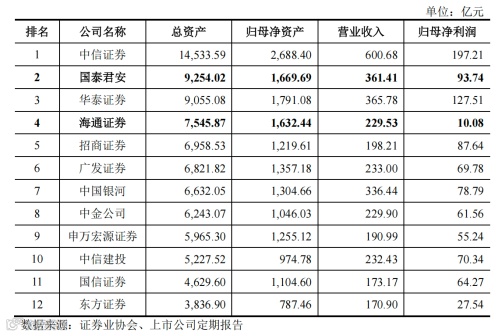 本次吸收合并前,国泰君安和海通证券分别位列国内券商营收第4和第10名;
