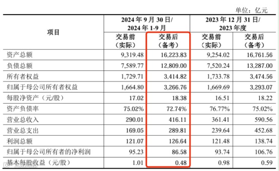 本次交易后,2024年1-9月存续公司的归母净资产将达到3,266.76亿元,且募集配套资金有望进一步扩大资本实力;存续公司的资产负债结构有望更为均衡,从而使得风险承载力更强、整体发展更为稳健。