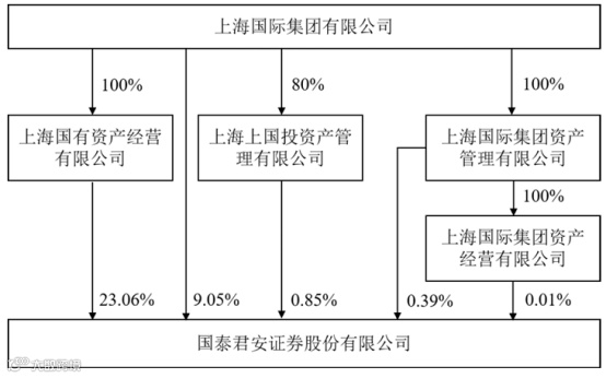 此外,国泰君安与海通证券实际控制人均为上海市国资委,直接及间接持股比例分别是32.63%和18.99%。