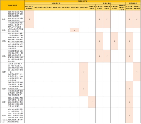 我们根据并购重组委对国泰君安的问询函,整理了问询函中的主要大类问题,汇总如下表所示。(本报告全文详见https://mvzxk.xetsl.com/s/2iNIZ6,加微bgys2015获取阅读权限)