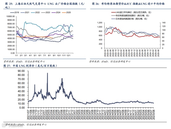 截至8月21日,欧洲TTF现货价格为11.27美元/百万英热,同比下降5.4%,周环比上升4.1%;美国HH现货价格为3.03美元/百万英热,同比上升35.9%,周环比下降1.3%;中国DES现货价格为11.37美元/百万英热,同比下降19.6%,周环比下降1.9%。