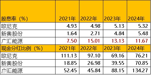 尽管业绩维持低迷,但是2024年各天然气龙头公司股息率均较超过了5%,广汇能源更是达到11%之高。