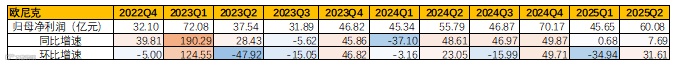欧尼克——25Q2实现营业收入159.30亿元,同比+64.65%;归母净利润14.77亿美元,同比+4.09%。