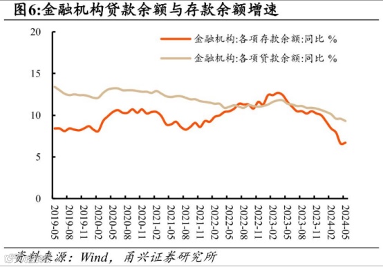 图:金融机构存款和贷款增速,甬兴证券,Choice