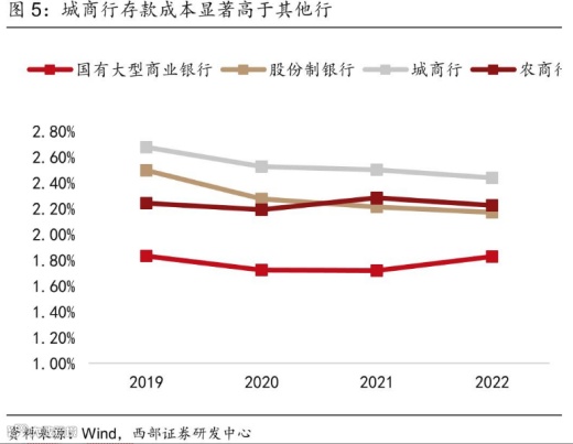 图:城商行存款成本率高于其他几类银行,西部证券,Choice