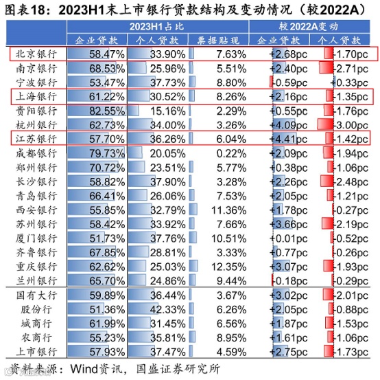 图:2023H1末城商行贷款结构,国盛证券,Choice