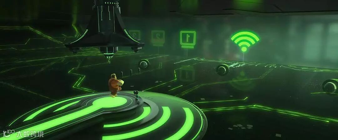 这趟实地考察孕育了《无敌破坏王2》中互联网世界的雏形,主创将它想象成一个像纽约、洛杉矶、北京这样的大都市。与前作中由延长插座转变成的游戏中央车站类似,剧组也为具象化的互联网设计了一个与很有现代生活感的枢纽——Wifi。拉尔夫与云妮洛普通过神秘的无线路由器发射的信号轨道,被传送到场景人物琳琅满目的互联网之都。