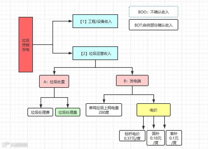 垃圾焚烧项目从建设到投入运营会产生建设收入、设备销售收入以及运营收入。