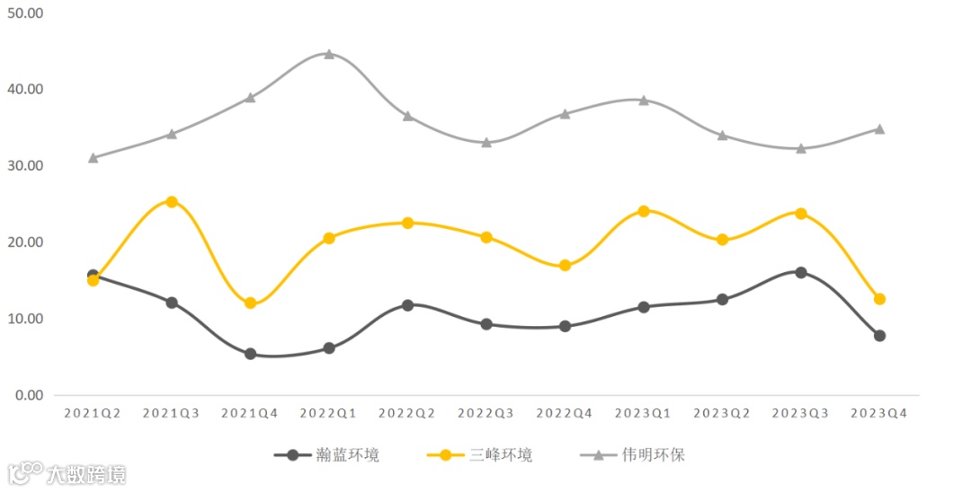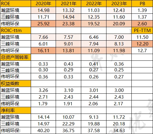 从2023年收入体量看,瀚蓝环境(125.4亿元人民币)>三峰环境(60.27亿元)>伟明环保(60.25亿元)。