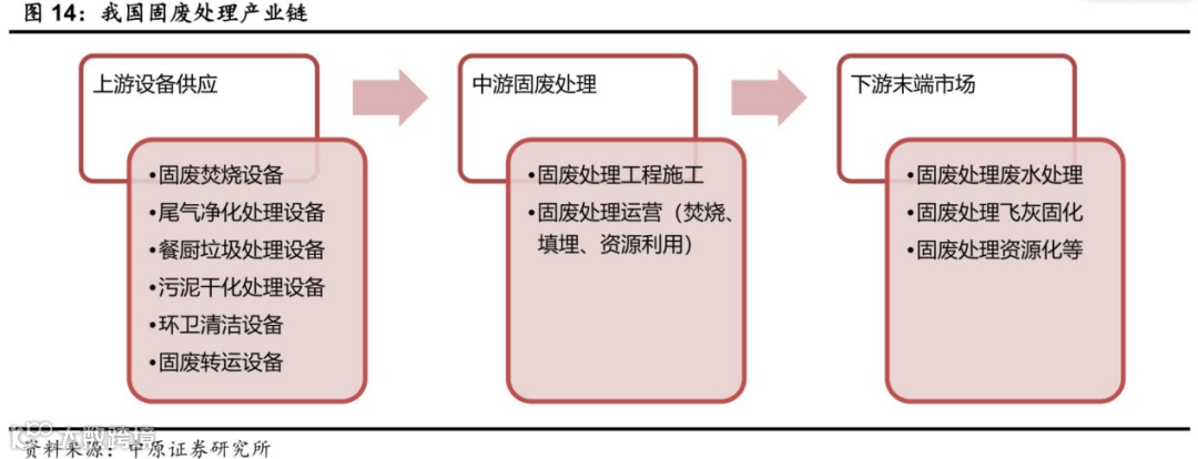 根据《固废年报》中的分类方式,固体废弃物大致分为:一般工业固体废物、工业危险废物、医疗废物、城市生活垃圾四类,固废环保涉及生活垃圾焚烧发电、危废处置、环卫、土壤修复、再生资源等领域,整体处理目标是无害化、减量化、资源化。