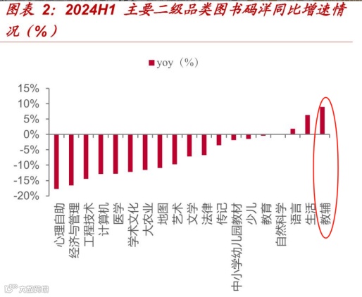 图:2024H1主要二级品类图书码洋同比增速情况来源:中泰证券