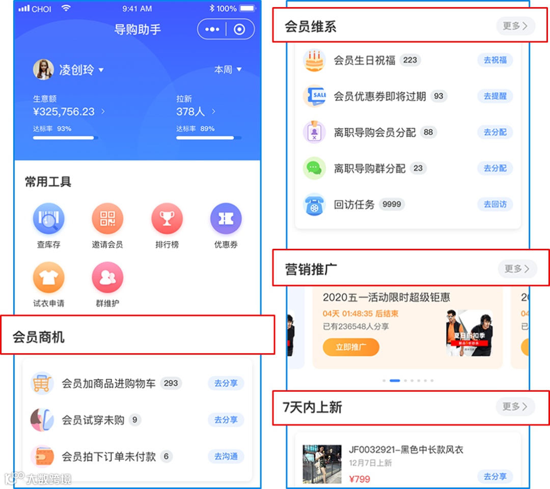 每一名顾客的“领券”“券即将到期”“加购未付款”“试衣未购”等动态,导购都可以第一时间获悉,助力导购把握商机。